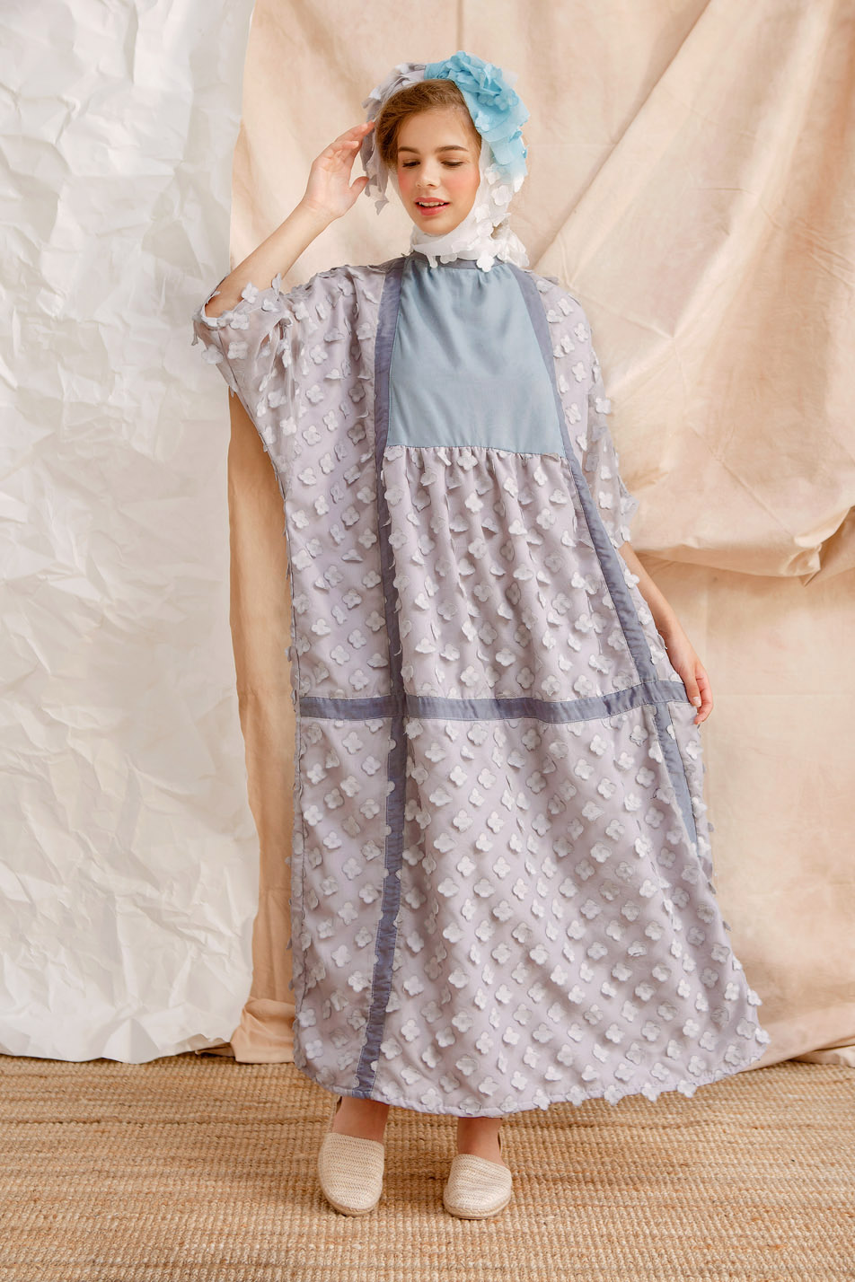 SANAZ DRESS GREY/ BLUESanaz dress in grey is embellished with light grey textured yet soft fabric, a.....