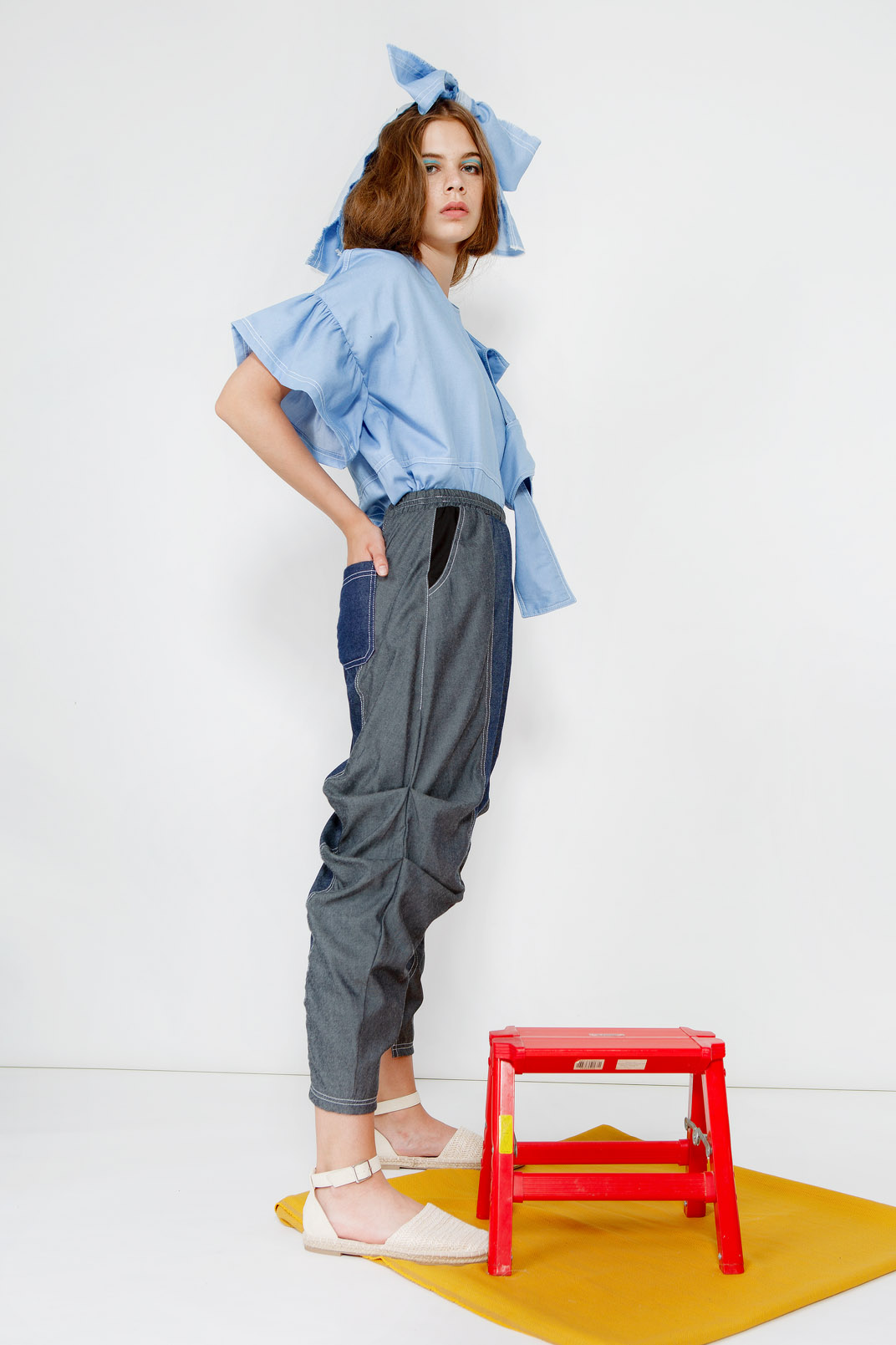 KYLIE PANTS LIGHT BLUEKylie pants is featured with semi curved legs and tapered hem for the quirky r.....