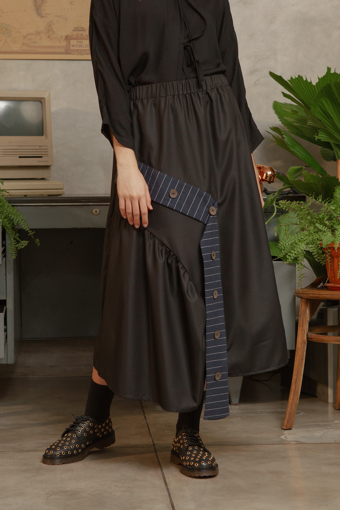 MISO SKIRT BLACK/ NAVY STRIPES* PO - 3 WORKING DAYS *Miso skirt features two side front pockets, str.....