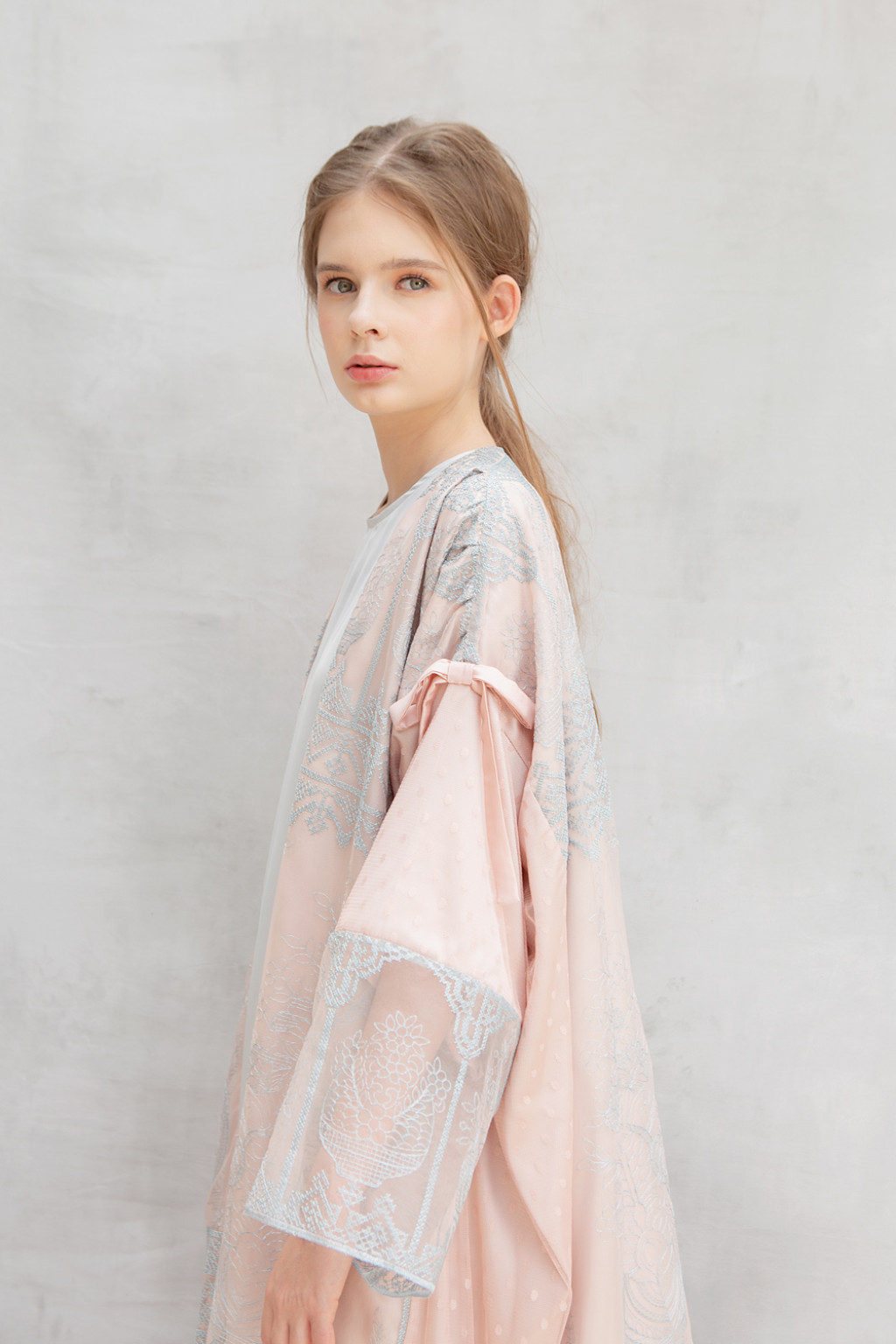 Brimming with romantic touches, Amira outer is made out of sheer organza fabric with soft embroidery motif of beautiful flower and nature. Combined with delicate tulle to add an airy frame, Amira is embellished with a tiny ribbon on both sleeves. Sweet and opulence, wear it with simple inner dress.