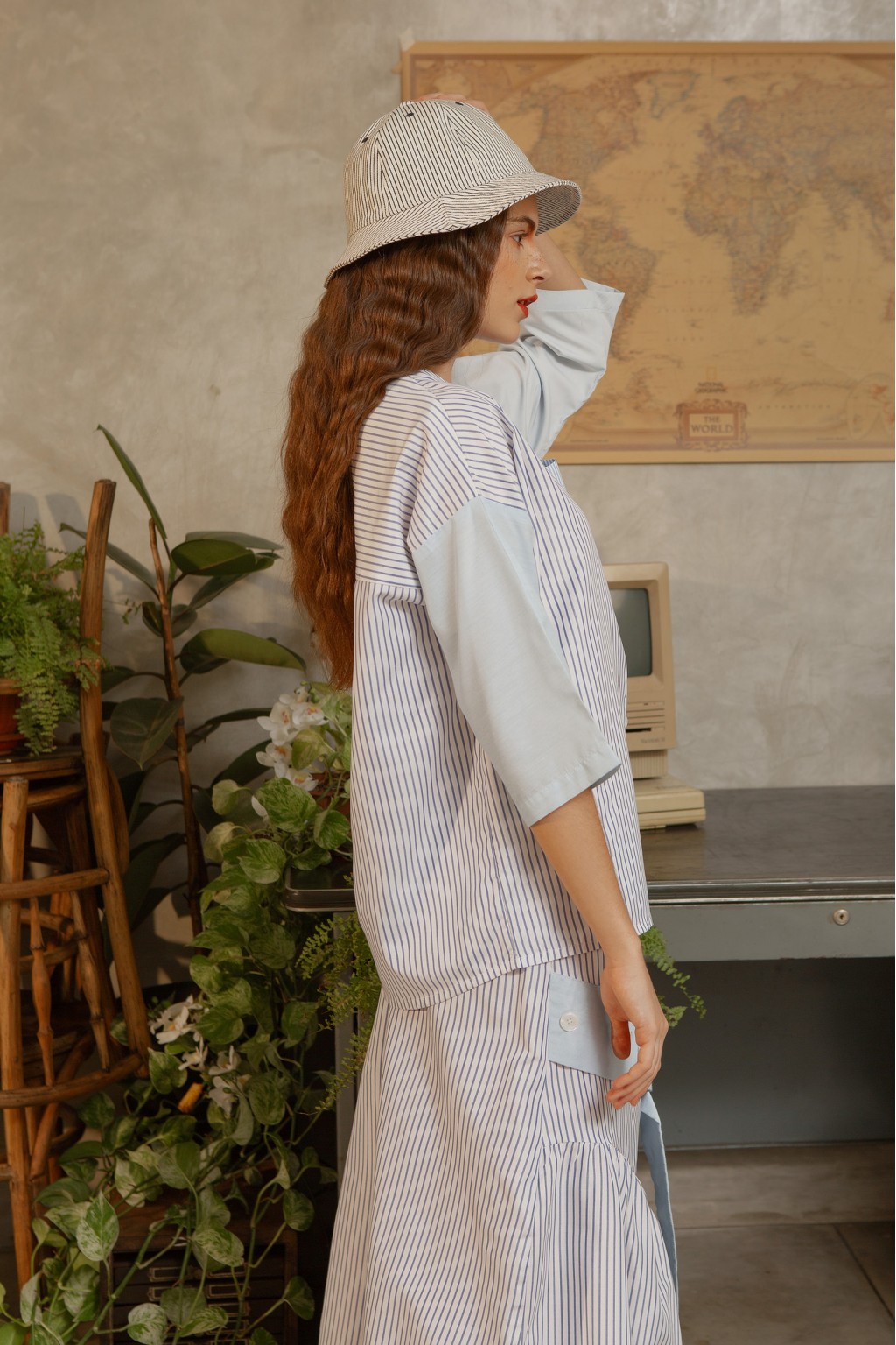 Fresh blue stripes Sara top is embellished with patched front pocket as detailing, below the knee-sleeve and asymmetric length. Our fav pick of this season, we love its versatility to go with white palazzo pants for work, or boyfriend's denim for your casual hang out.