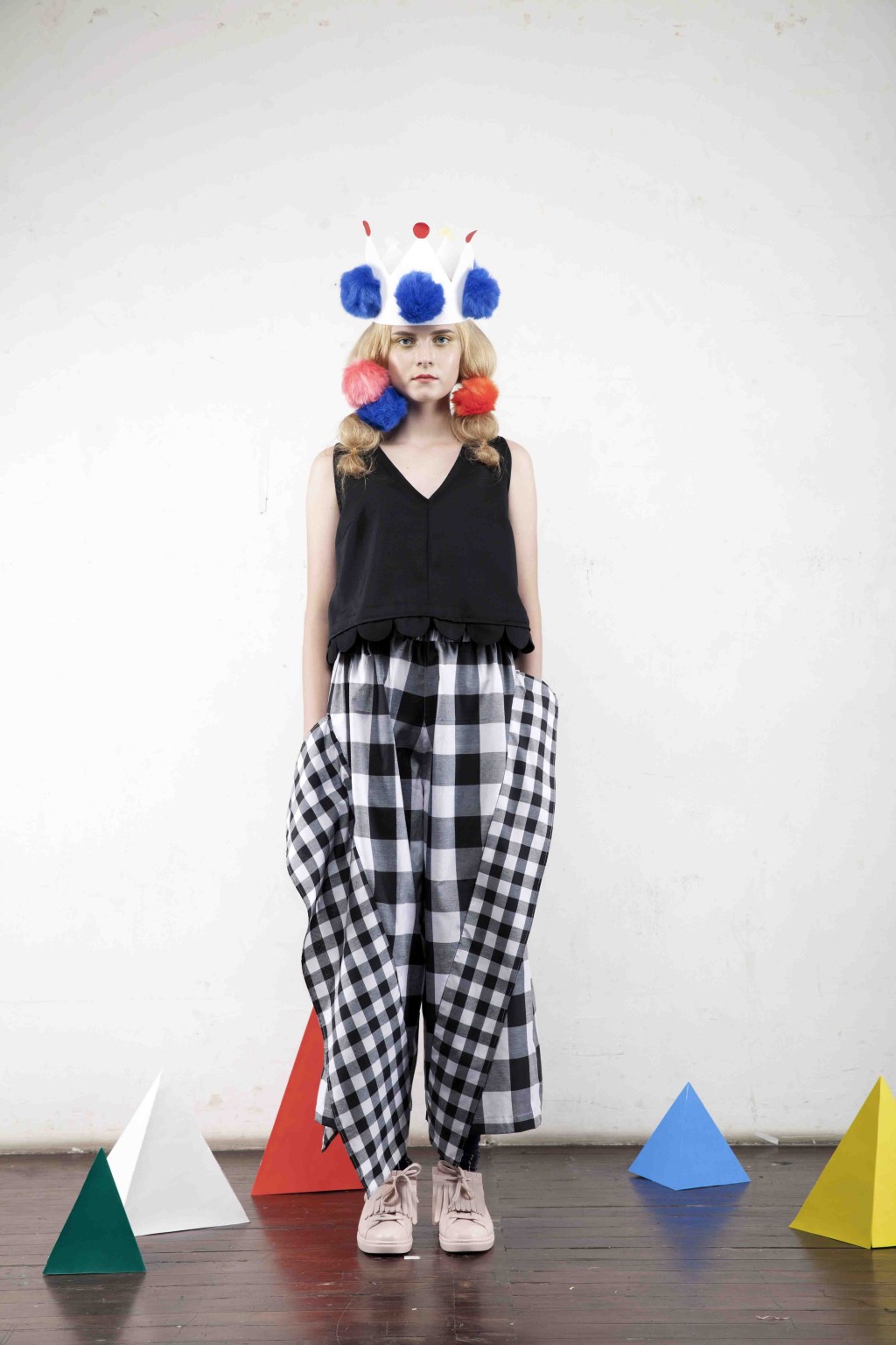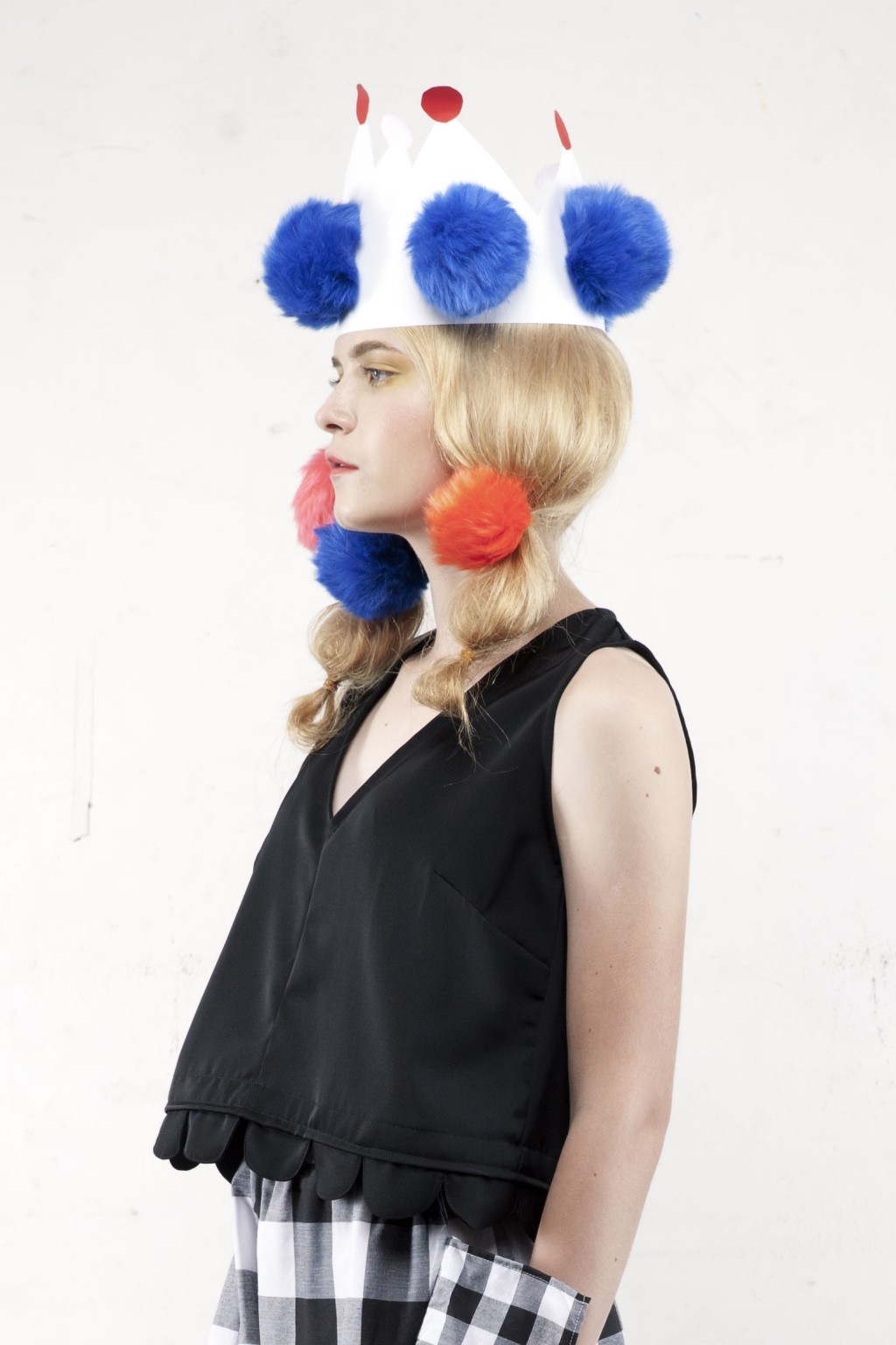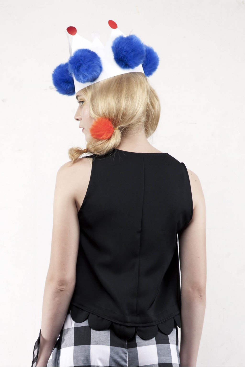 Cropped and scallop-ed. The Dame sleeveless top has a v-neck opening and semi a-line bodice. Versatile and witty, wear it with our Miller black checks bottom.